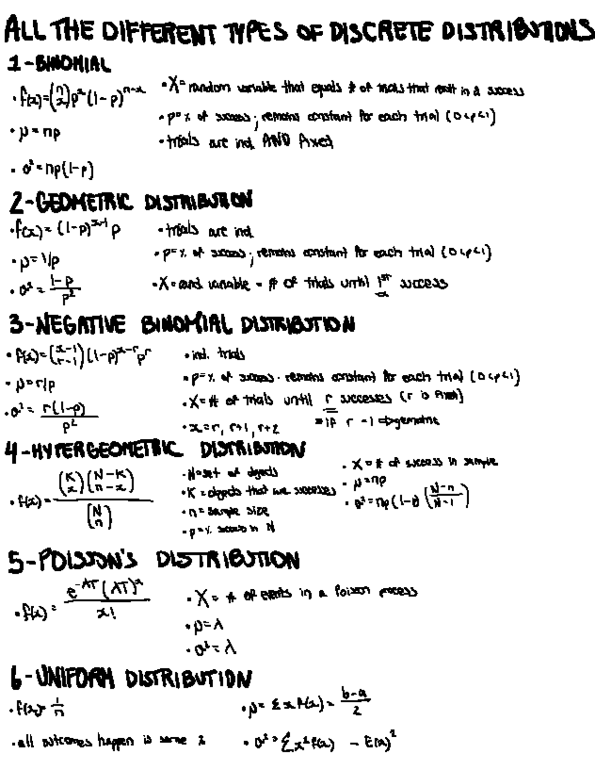 Discrete Distributions Formulas (Week 2) - Studocu