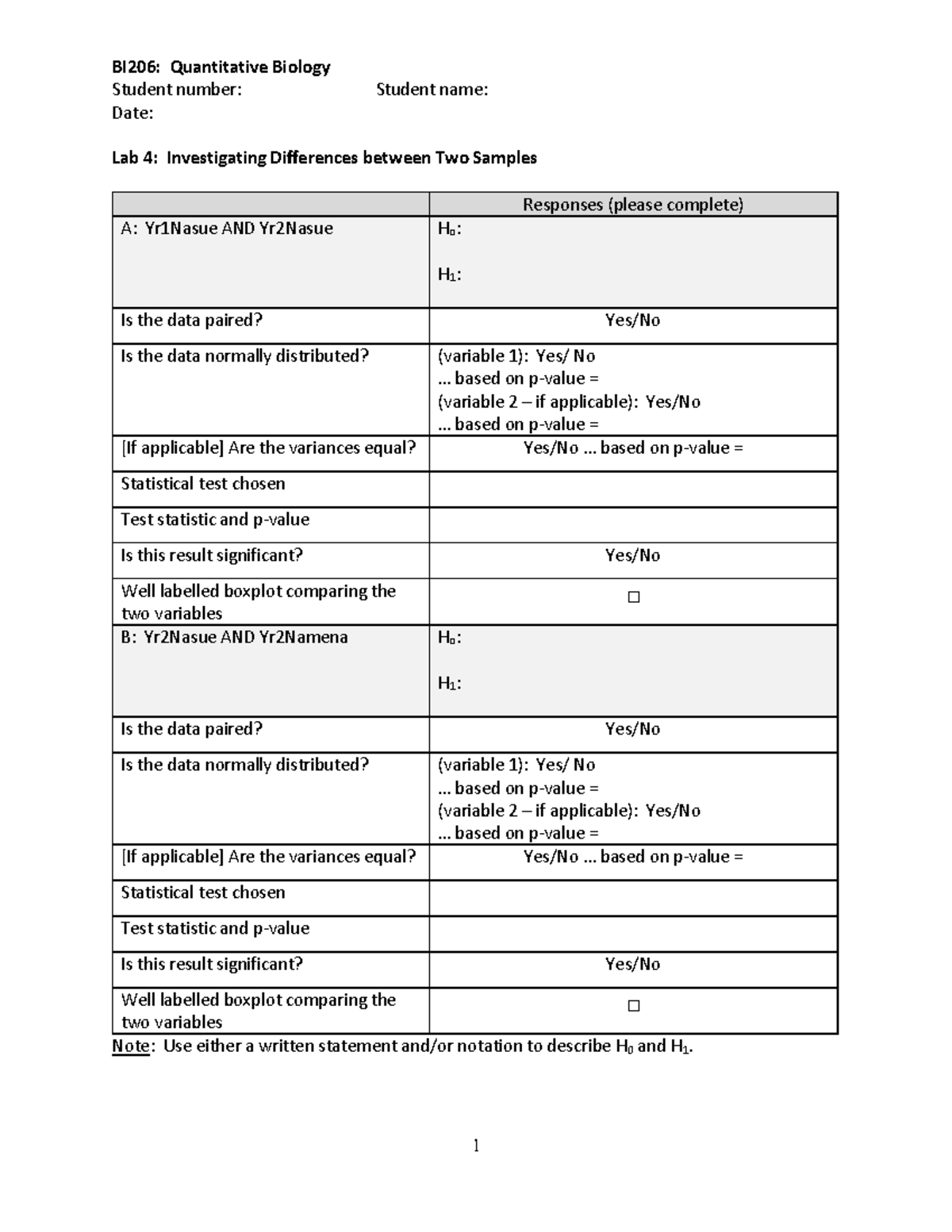 BI206 Lab 4 - Quantitative Biology Lab practice on R system software ...