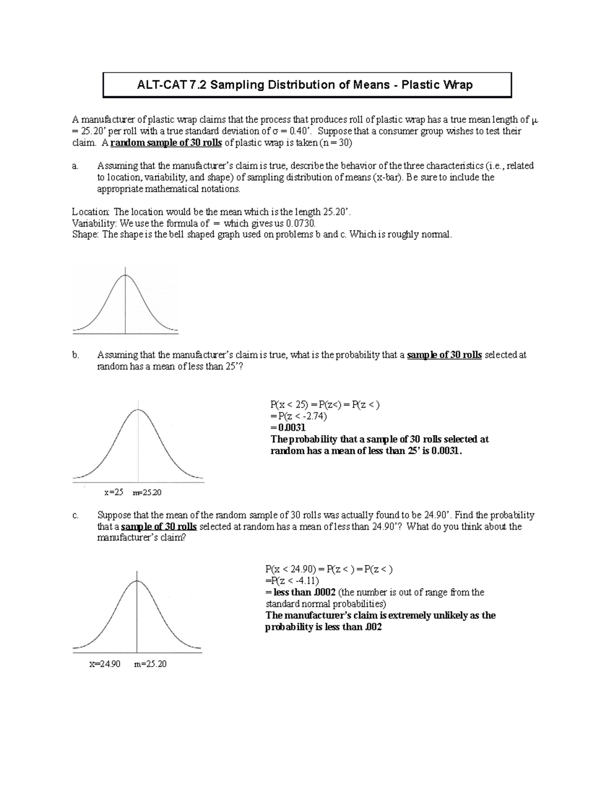 Homework ALT-CAT 7.2: Sampling Distribution of Means & Analysis - Studocu