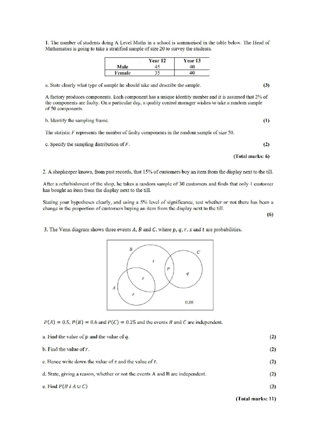 Statistics Paper 2: Sampling Methods and Probability Analysis - Studocu