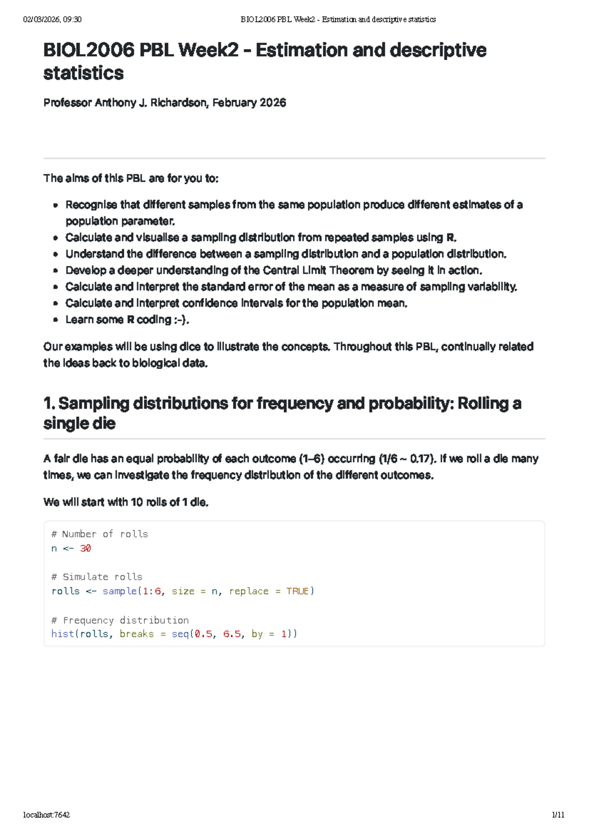 Week 1 lecture notes - BIOL2006 & BIOL 2106 BIOSTATISTICS ...