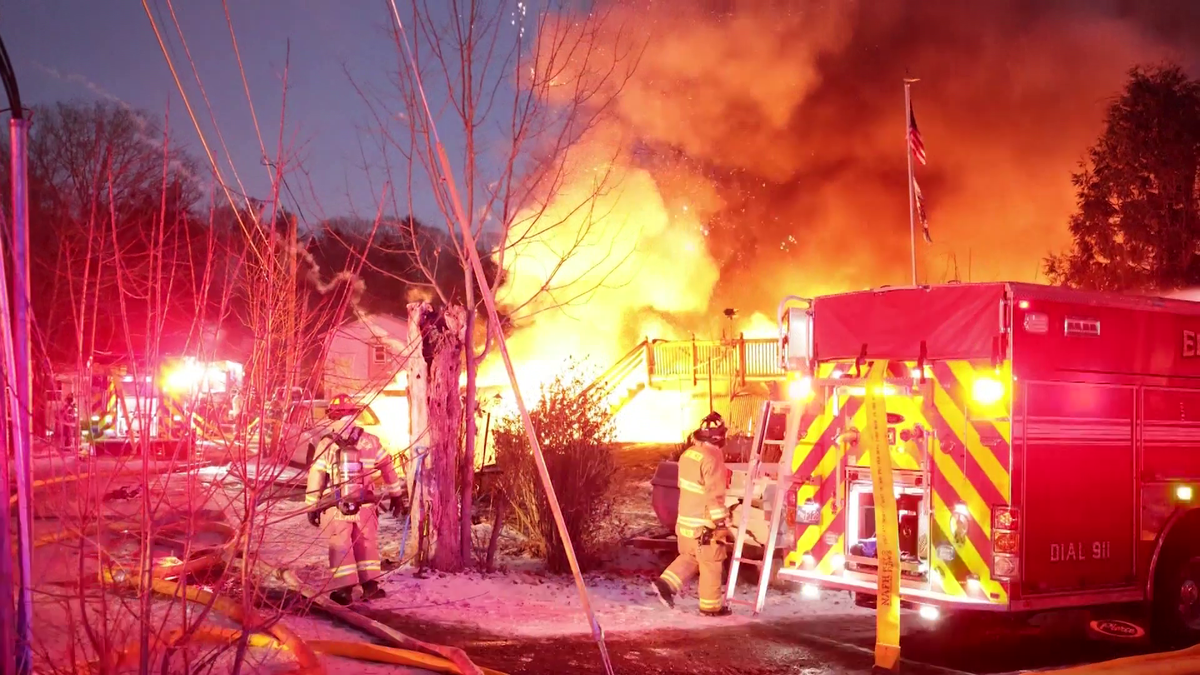 2 homes destroyed, another damaged by large fire in Central Mass.