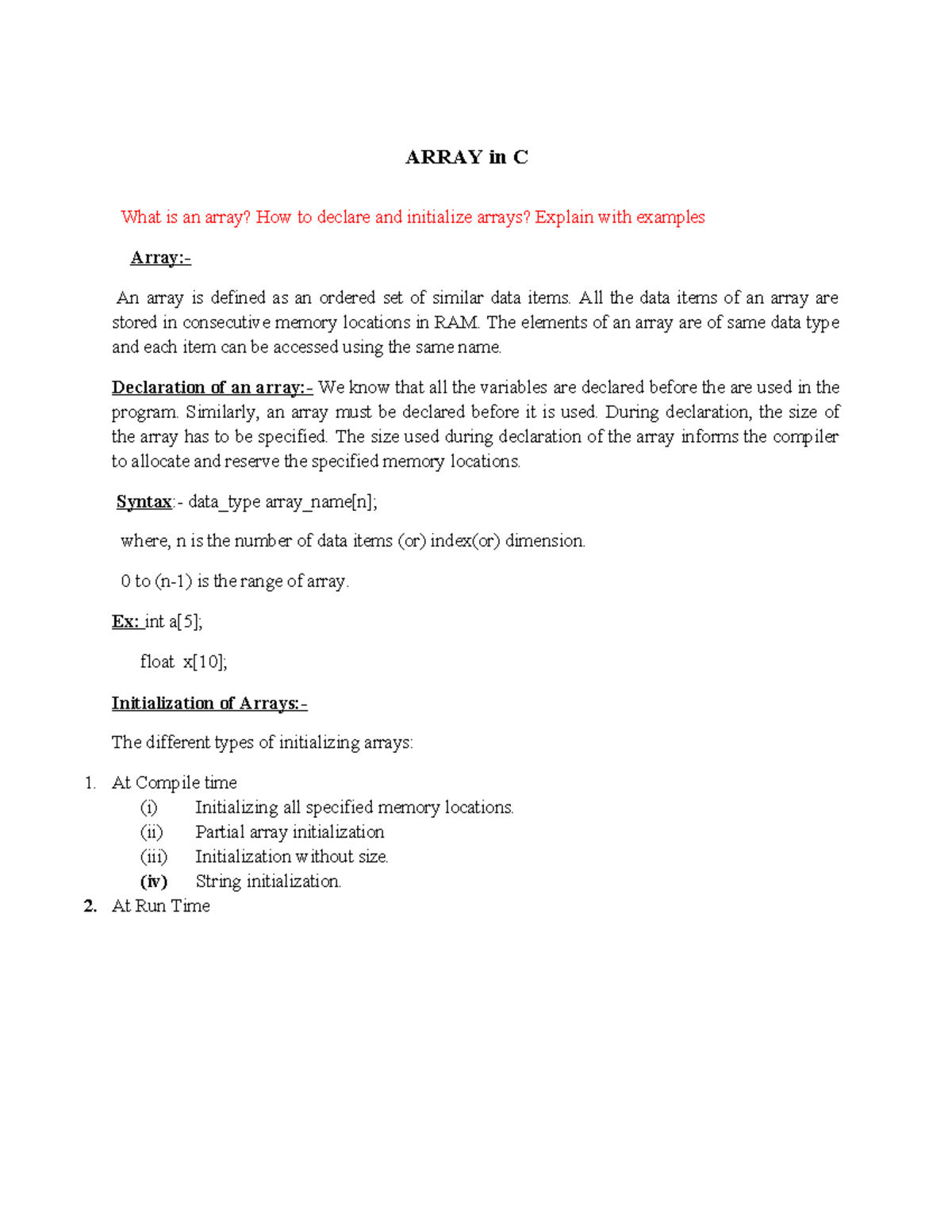 C Programming UNIT IV: Understanding Arrays and Strings - Studocu