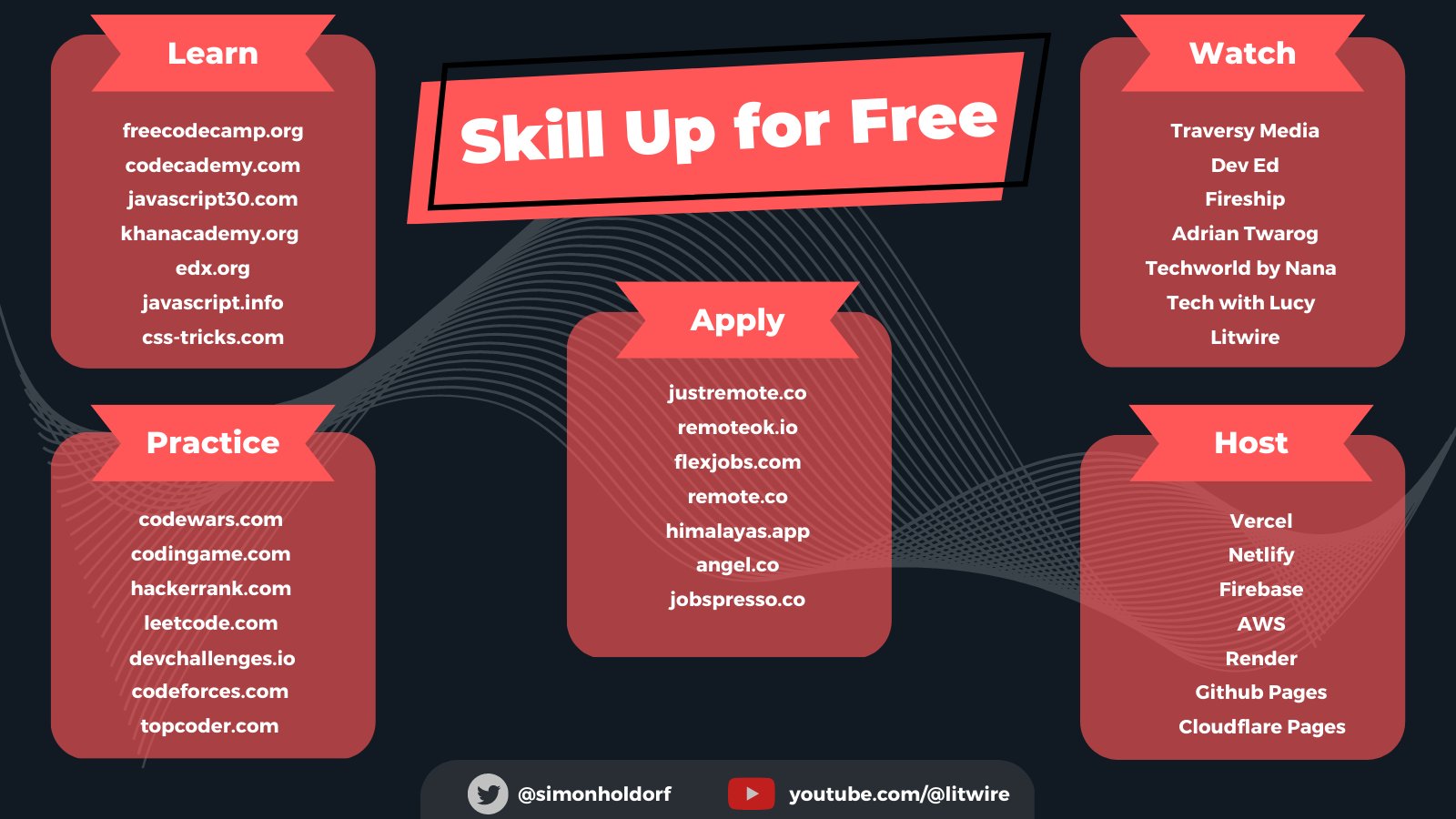 Simon on Twitter: "Free resources to learn, build & get a job in tech ...