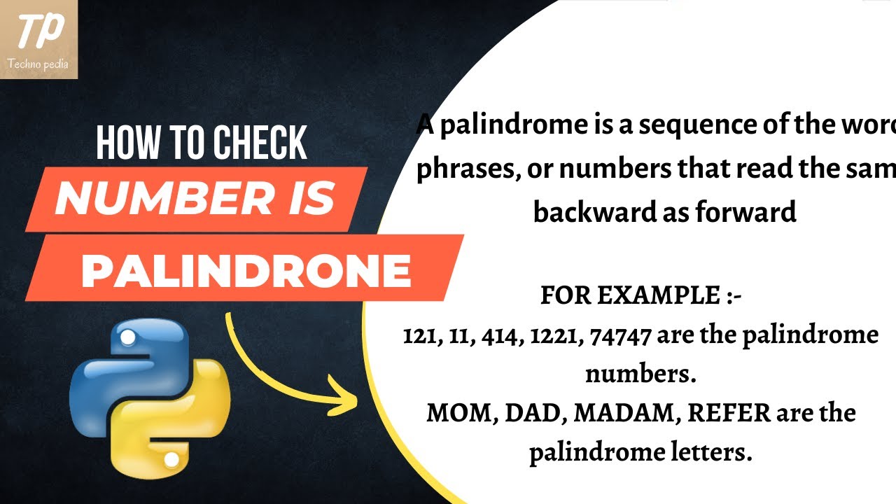 How to check number is palindrome or not |python#10|#technopedia - YouTube