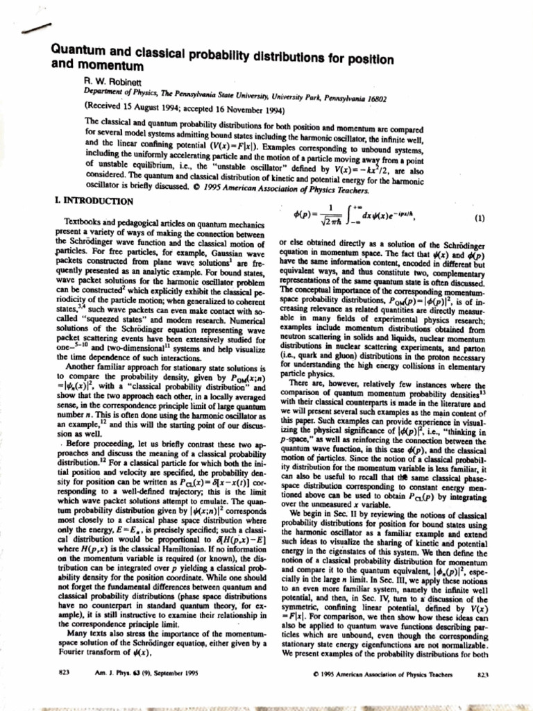 Cuantum and Classical Probability Distributions For Position and ...