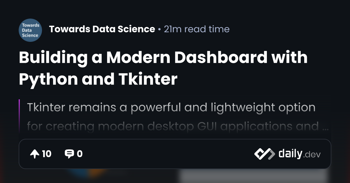 Building a Modern Dashboard with Python and Tkinter | daily.dev