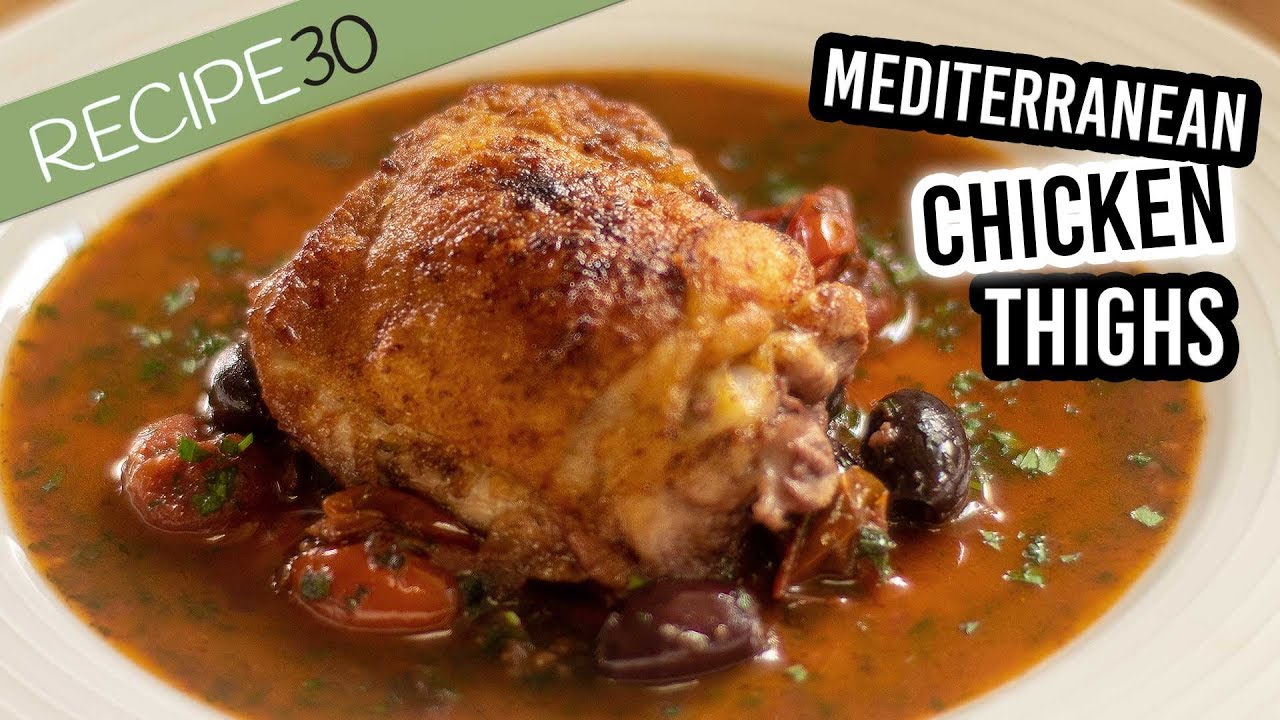 Mediterranean chicken thighs | Braised and roasted with olives and red wine
