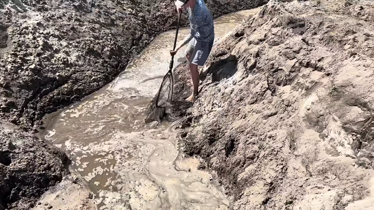 Watch what happens when they find a rare fish still alive in the mud