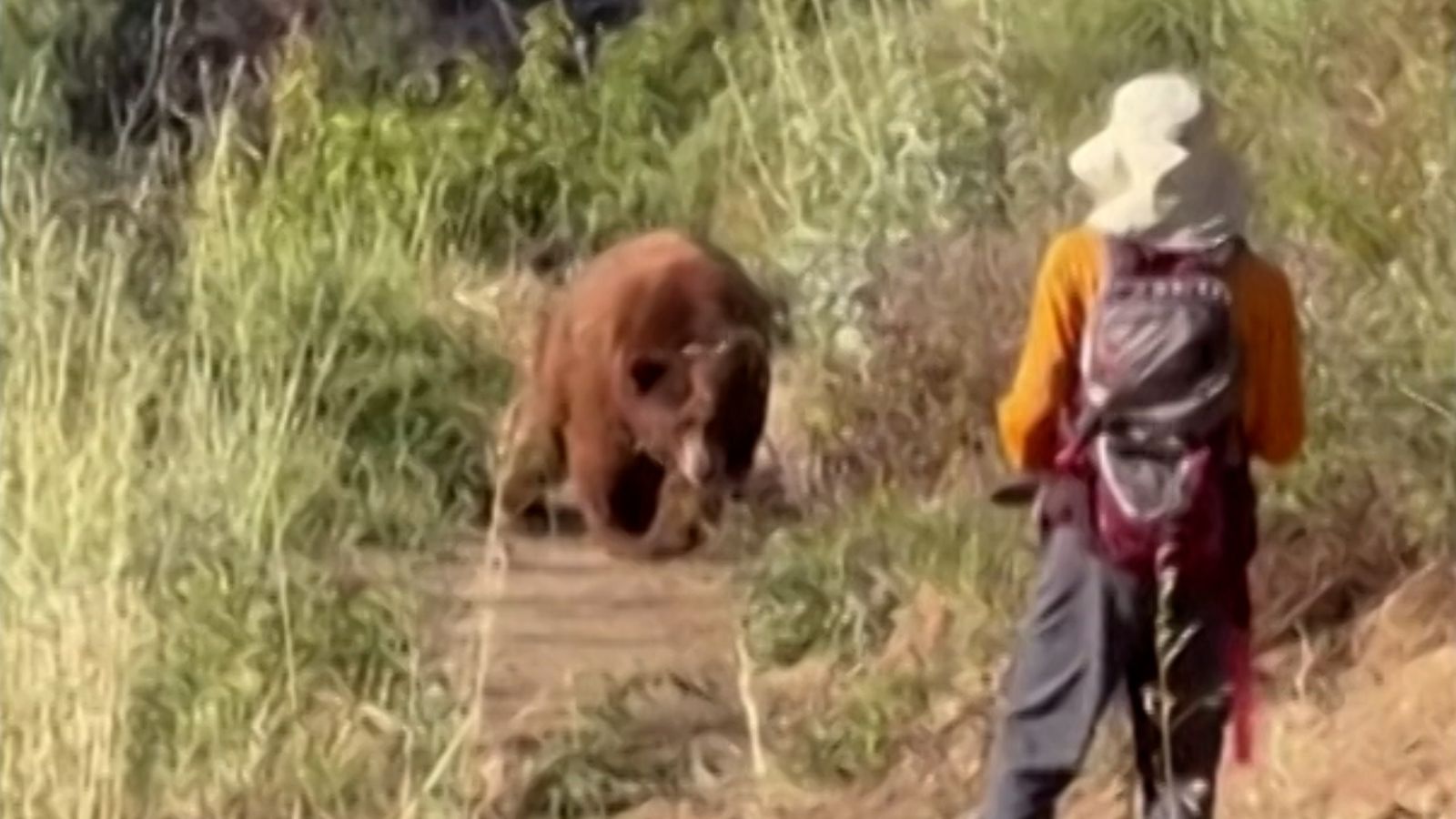 Moment bear charges at hiker