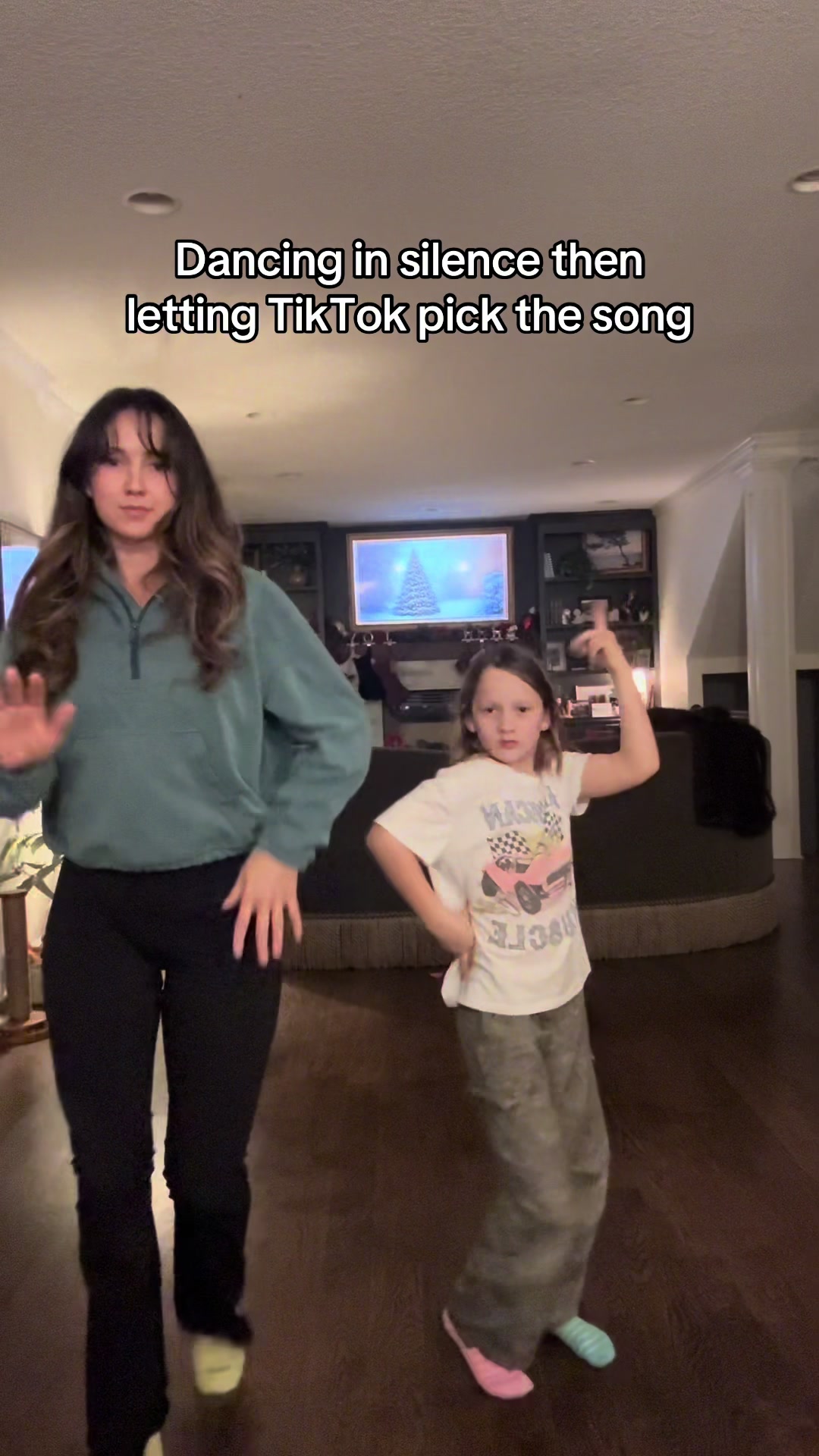 Fun dance moment with mismatched slippers and spontaneous choreography