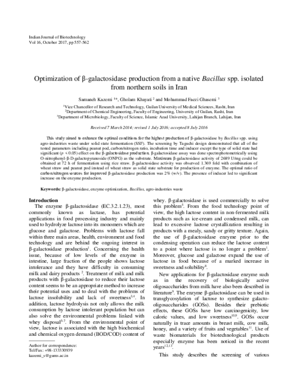 (PDF) Optimization of β-galactosidase production from a native Bacillus ...