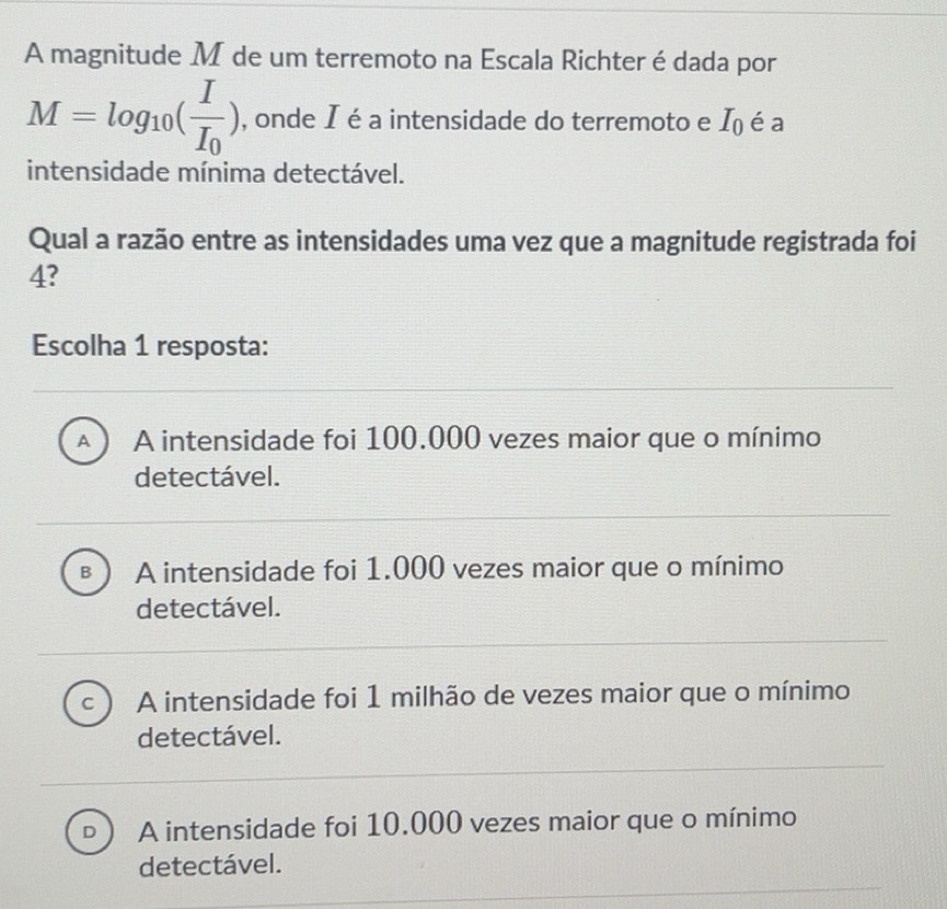 Resolvido:A magnitude M de um terremoto na Escala Richter é dada por M ...