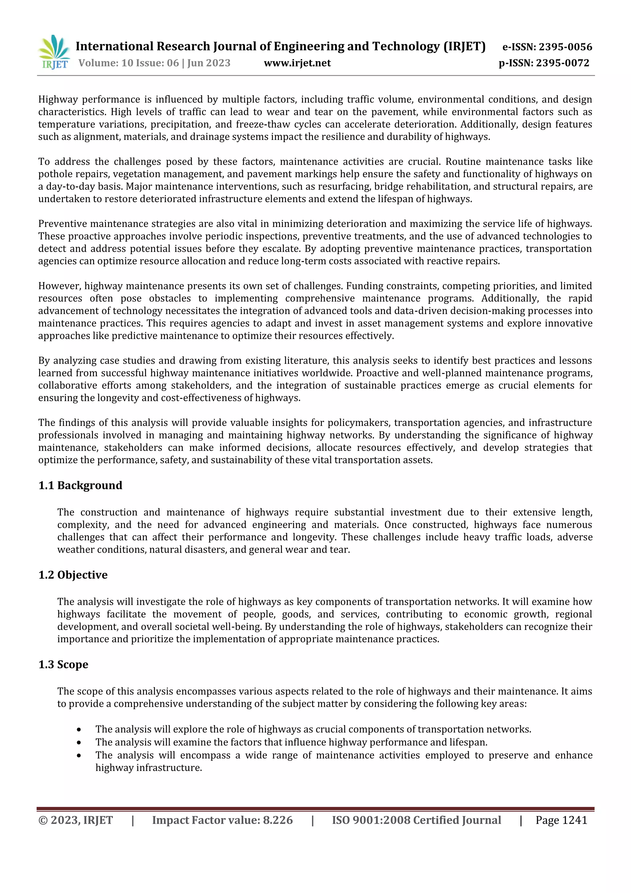 Analyzing the role of Highway & their Maintenance A case study | PDF