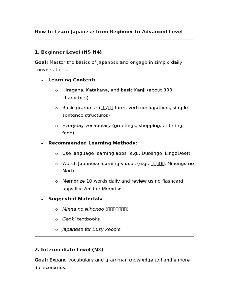 How To Learn Japanese From Beginner To Advanced Level | PDF | Japanese ...