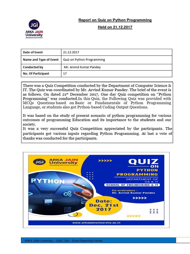 Report On Quiz On Python Programming 1 | PDF | Games & Activities