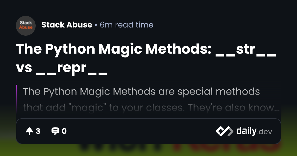 The Python Magic Methods: __str__ vs __repr__ | daily.dev