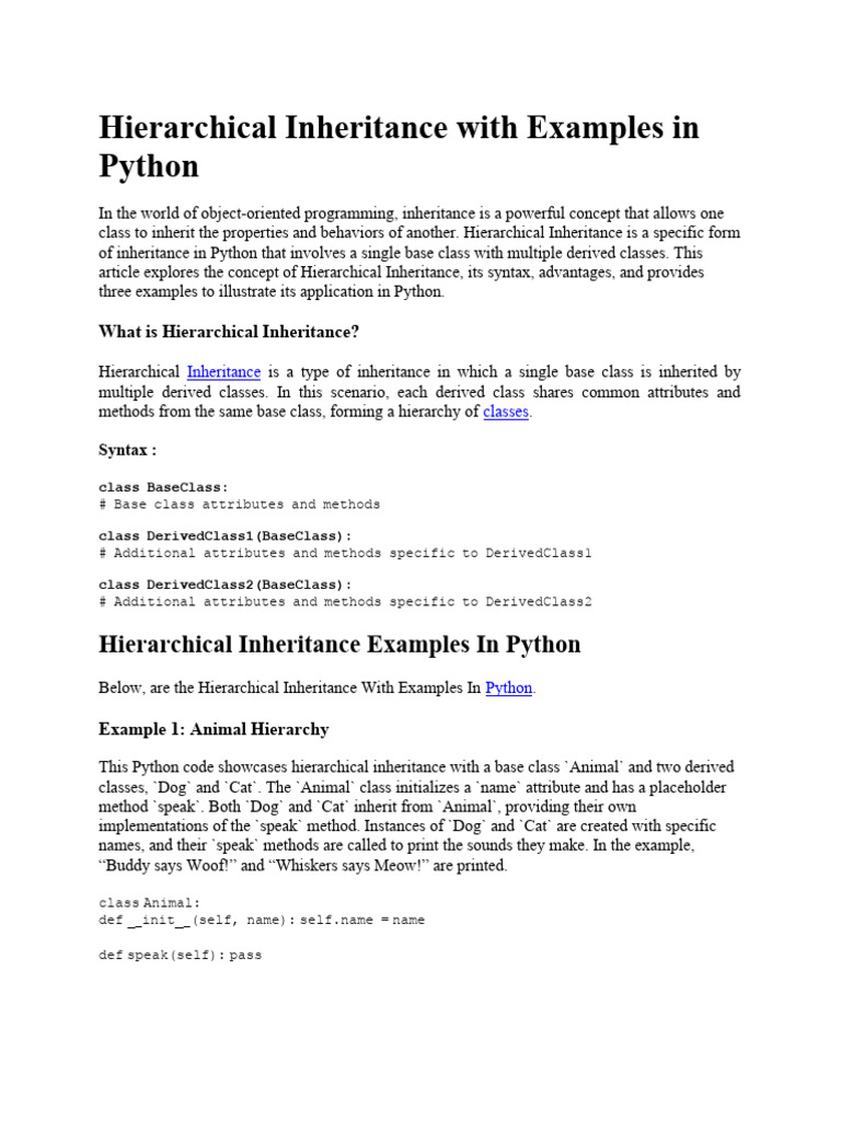 Hierarchical Inheritance With Examples in Python | PDF | Class ...