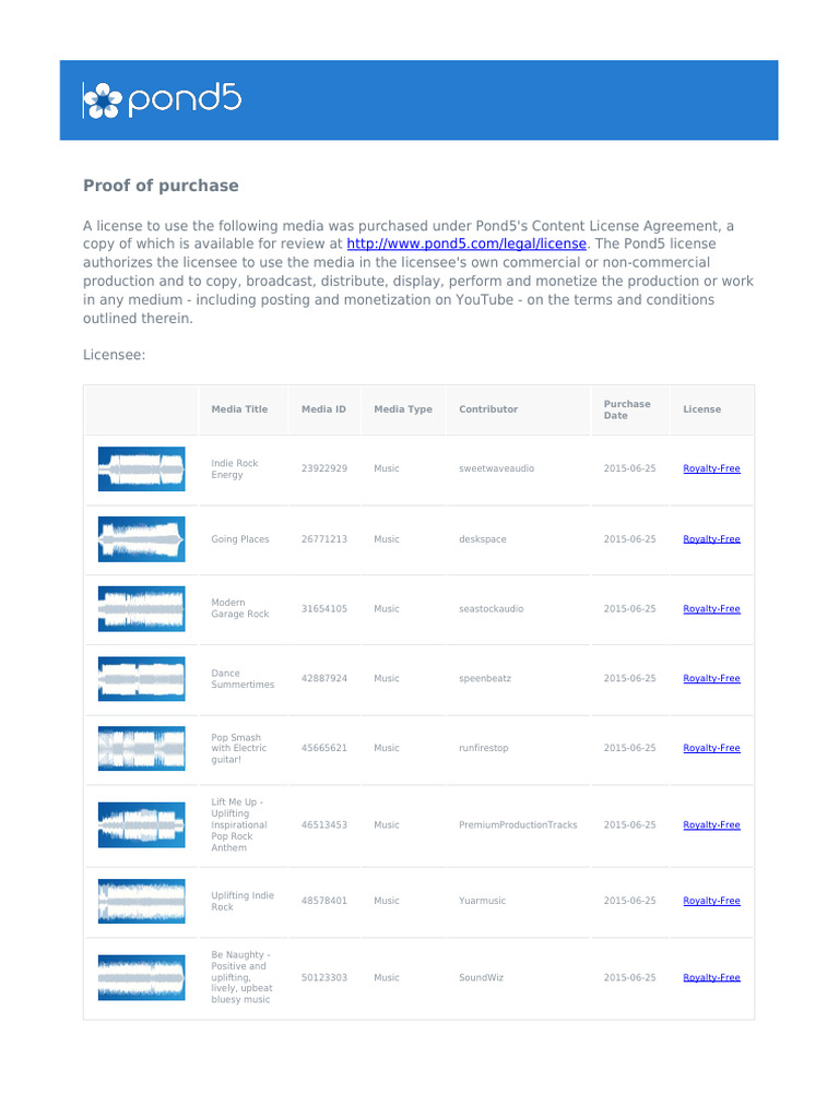 Pond5 Proof of Purchase - Nr1750488 | PDF