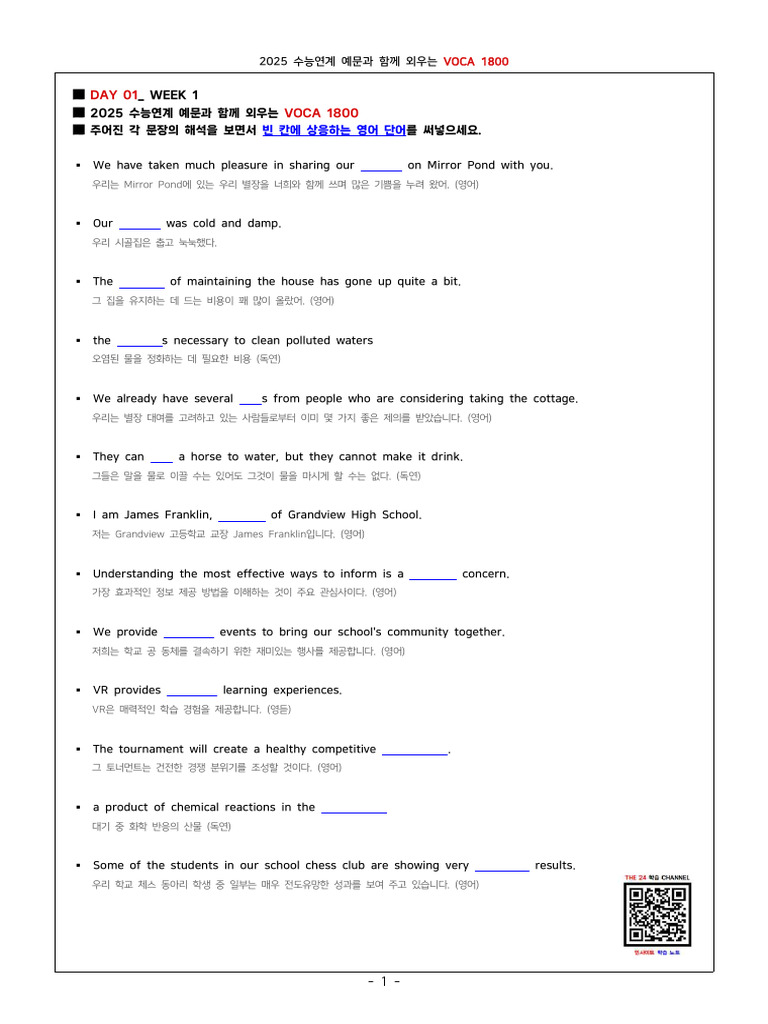 (2025) - VOCA1800 - 수능연계예문암기하기 - (DAY 01~ DAY 60) - 통합본 | PDF