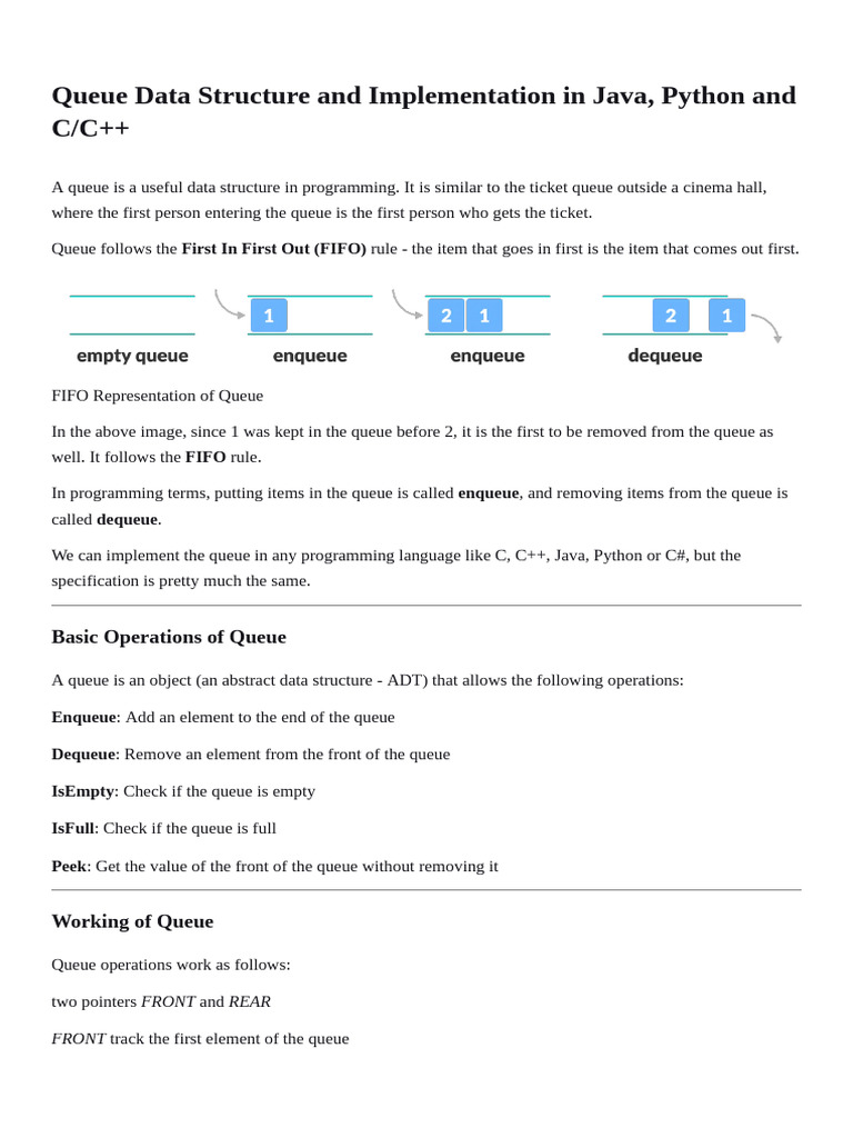 Queue Data Structure and Implementation in Python | PDF | Queue ...