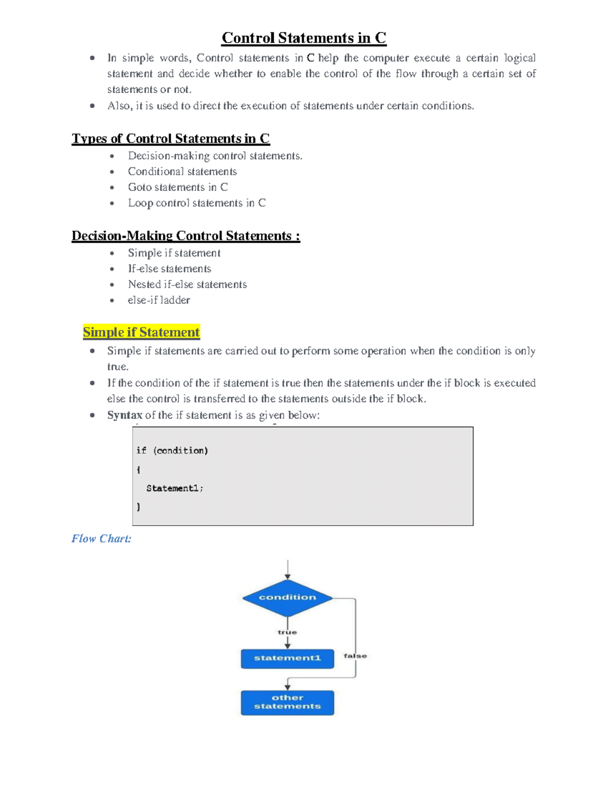 Control Statements in C: Types and Examples (CS 2.4) - Studocu