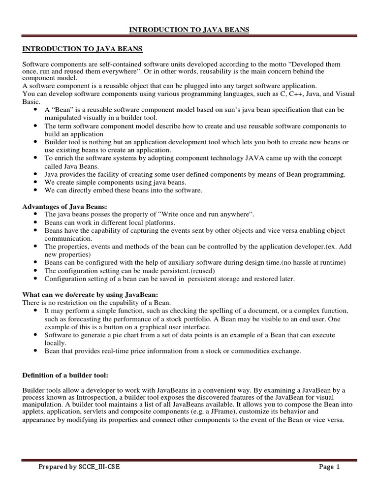 Java Beans-SK - INtoduction to java Beans - UNIT 1 INTRODUCTION TO JAVA ...