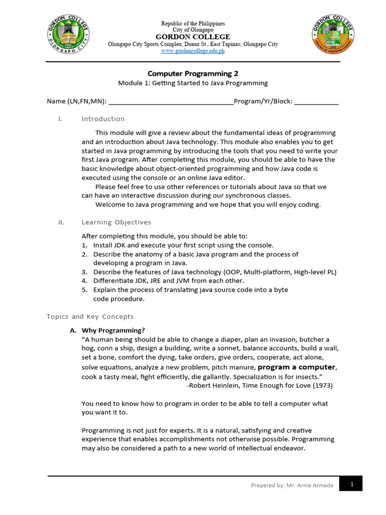 Based on this image's title: “Module 1 - Getting Started To Java Programming | PDF | Java ...”