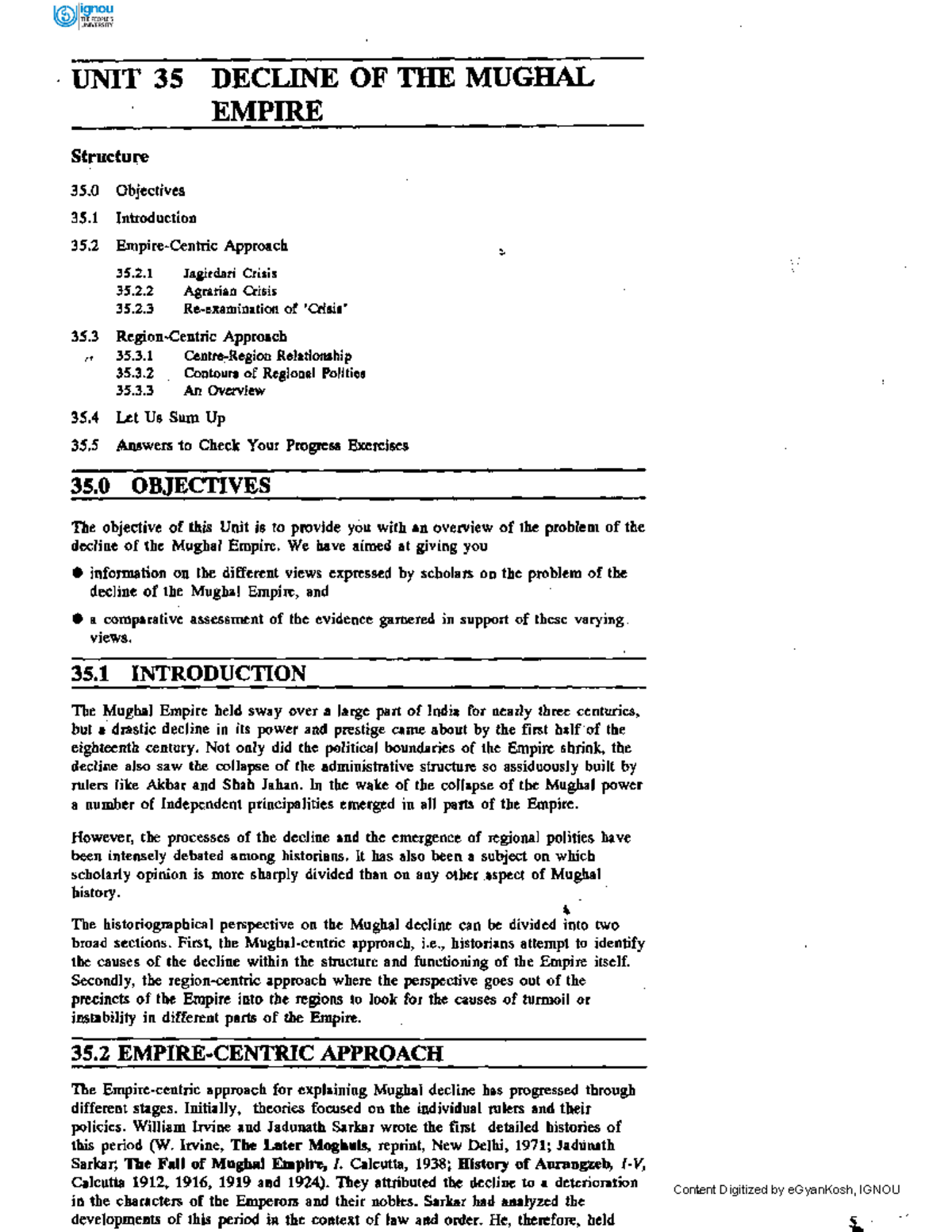 Unit-35 - a UNIT 35 DECLINE OF THE MUGHAL EMPIRE Structure 35 ...