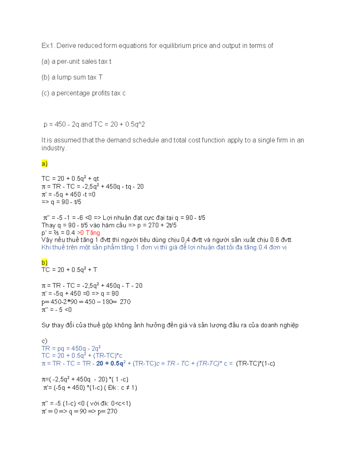 bài tập mô hình - Ex1. Derive reduced form equations for equilibrium ...
