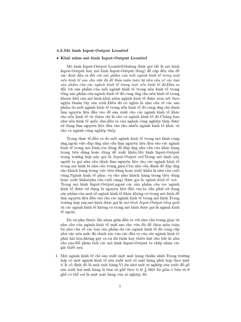 MÔ HÌNH Input-Output Leontief: Phân Tích Kinh Tế Đa Ngành - Studocu