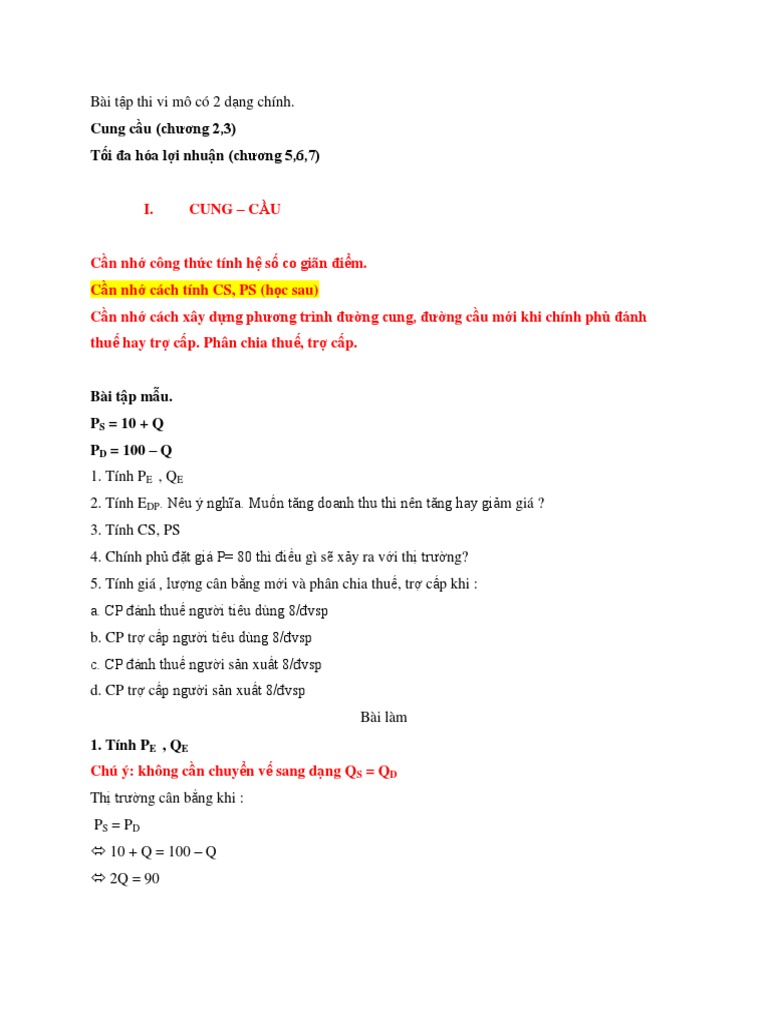 Các Dạng Bài Tập Ôn Thi Vi Mô CUNG CẦU | PDF