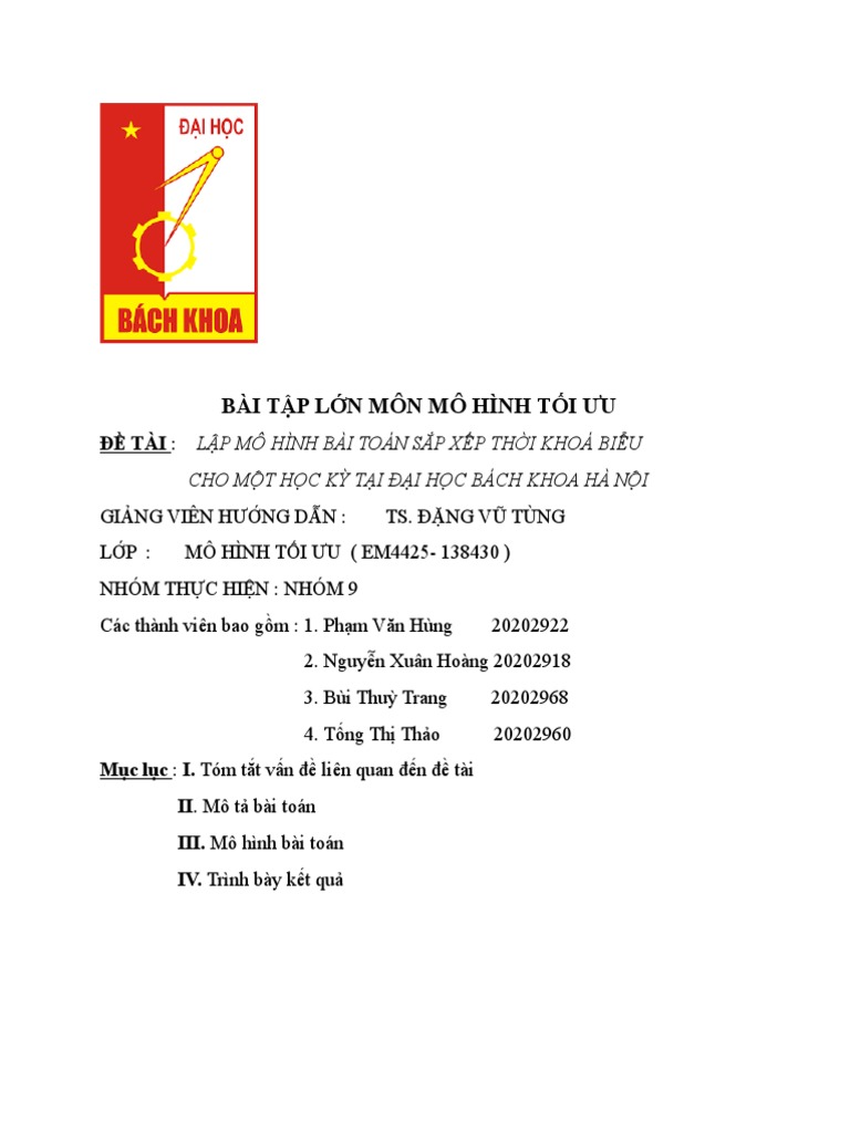 BÀI TẬP LỚN MÔN MÔ HÌNH TỐI ƯU | PDF