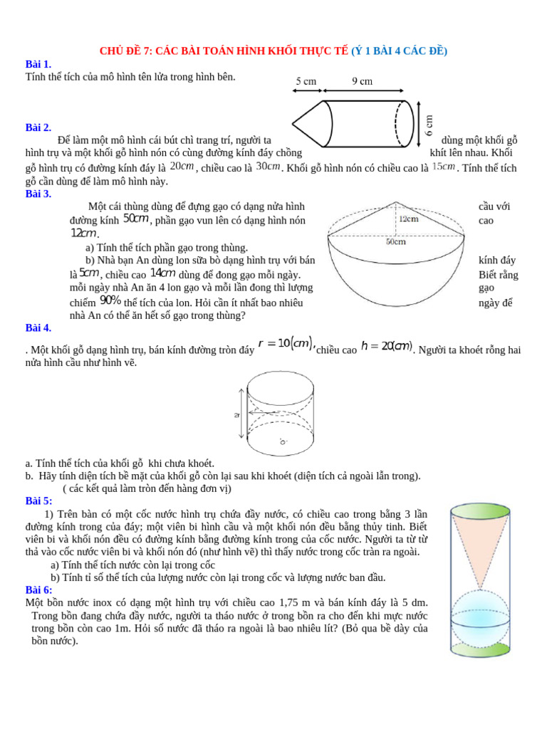 Chủ đề 7. Các bài toán hình khối thực tế | PDF