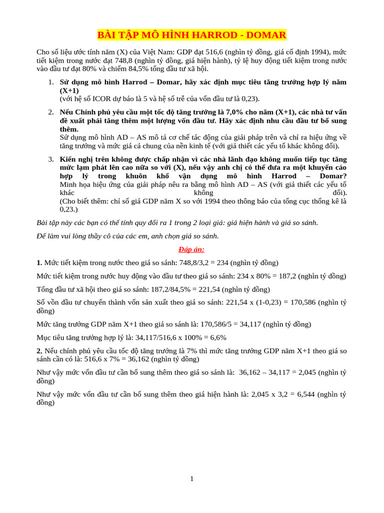 Bài tập mô hình Harrod - Domar | PDF