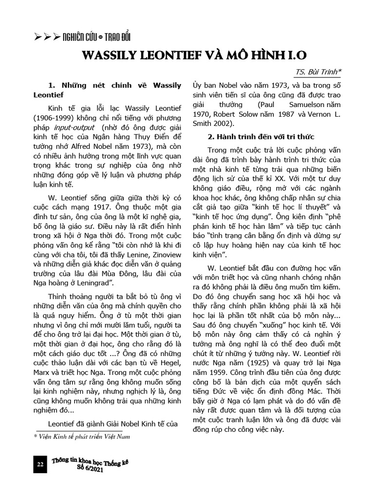 Mô hình Input - Output của Leontief trong Phân tích Kinh tế: Xác ...