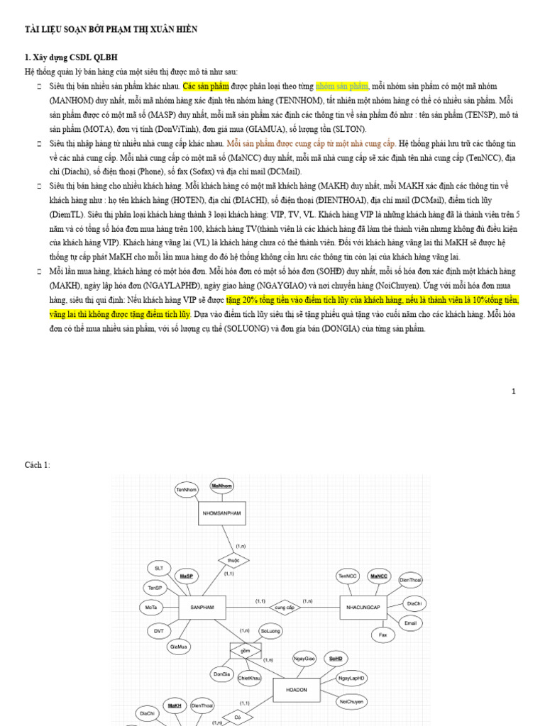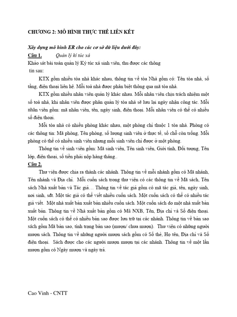Bài tập Mô hình thực thể liên kết | PDF