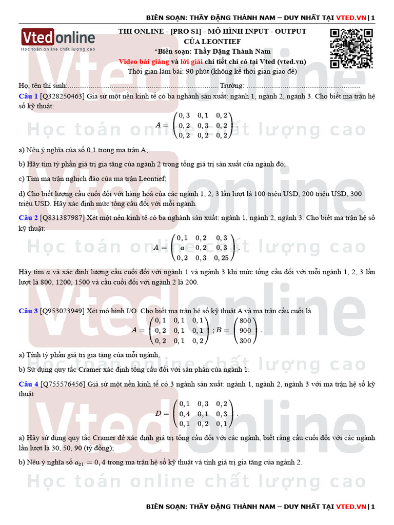 Thi Online - (PRO S1) - Mô Hình Input - Output Của Leontief | PDF