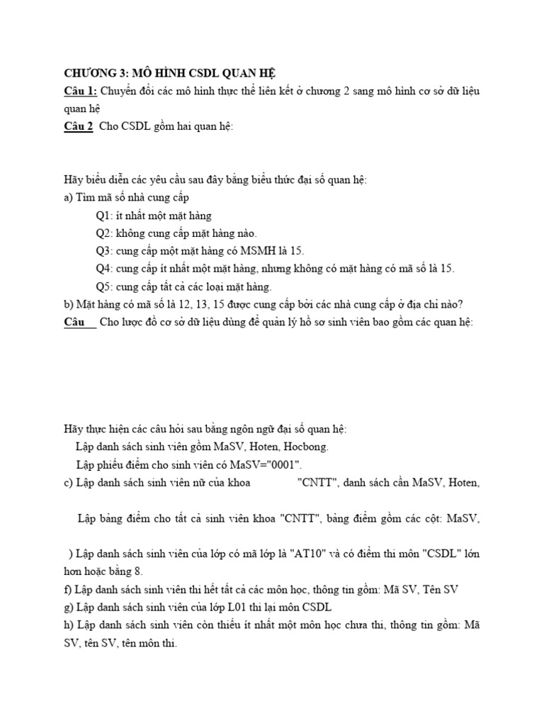 Bài Tập Mô Hình Quan Hệ | PDF