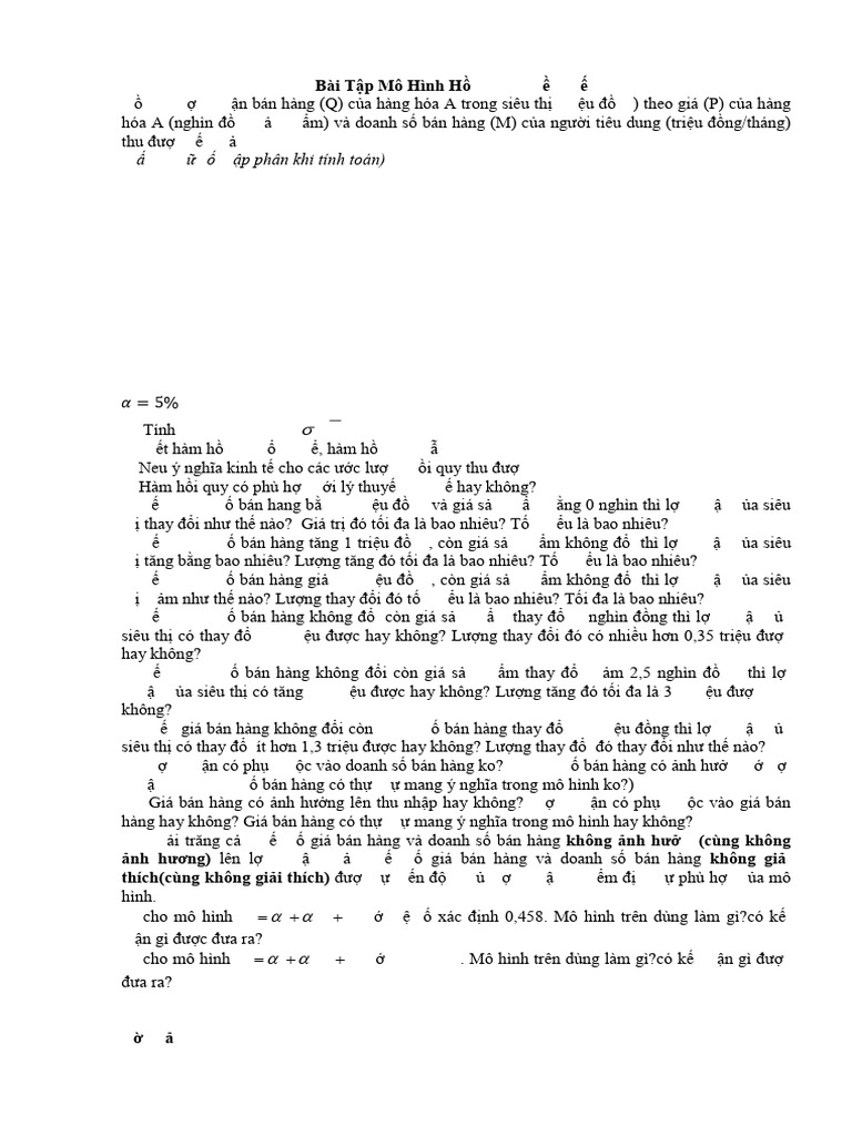 Bài Tập Chương Mô Hình Hồi Quy Nhiều Biến. | PDF