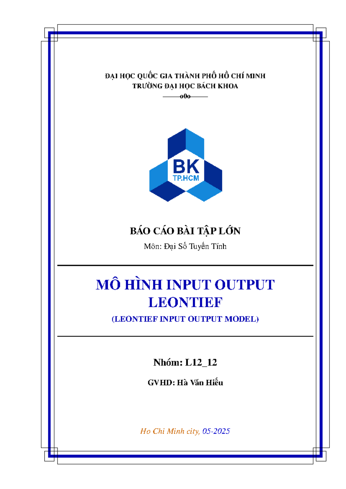Báo cáo Bài Tập Lớn DSTT: Mô Hình Input Output Leontief - Đề Tài 17 Học ...