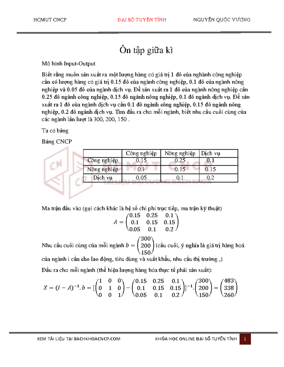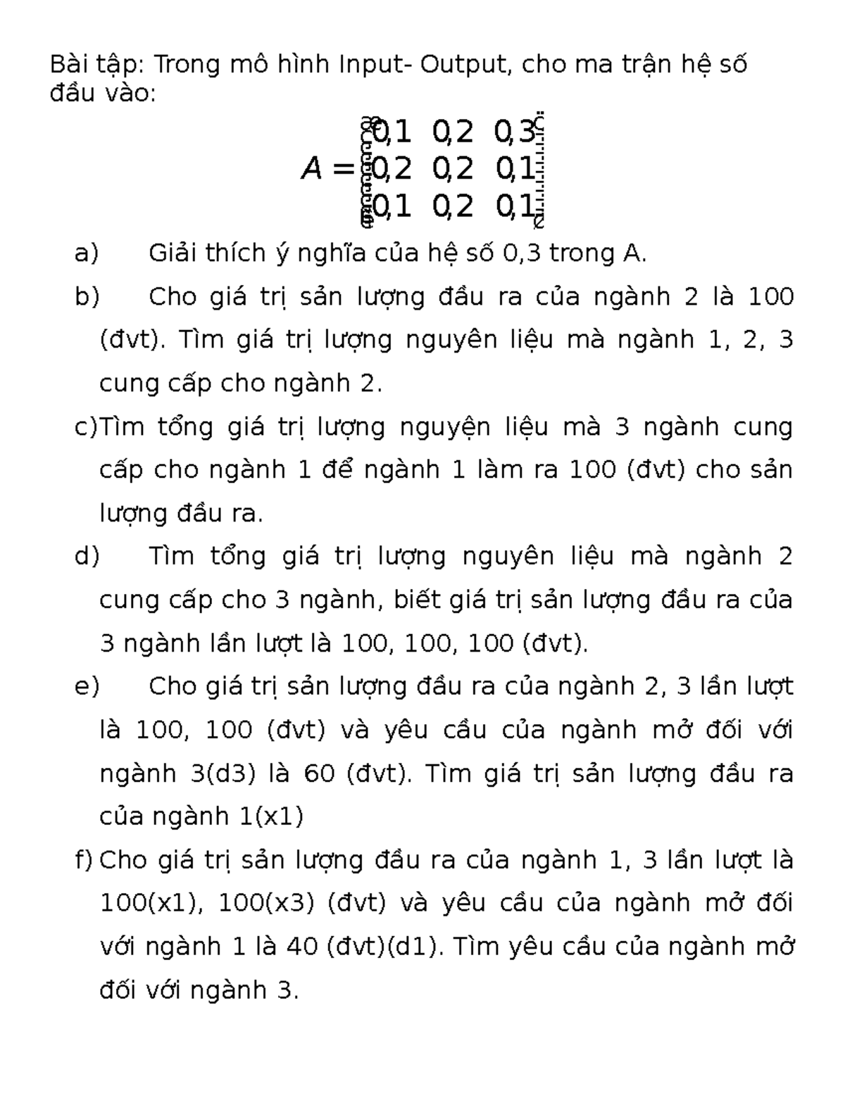 5. Bài Tập - Toán Kinh Tế: Mô Hình Input-Output Leontief - Studocu