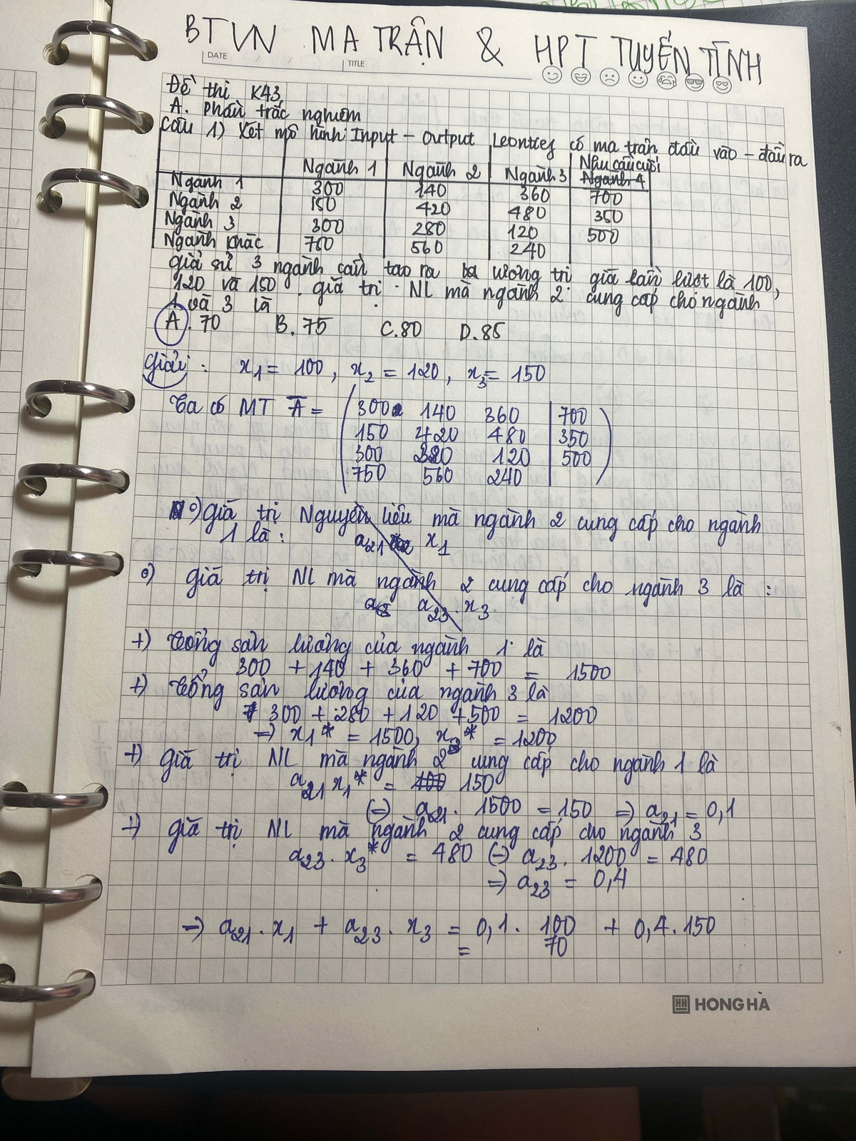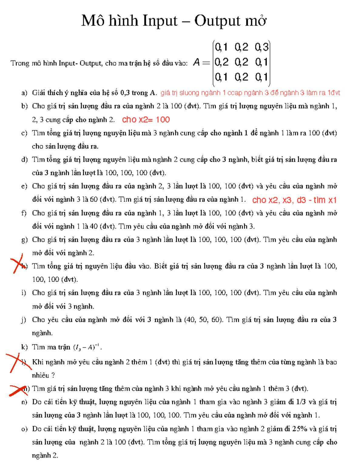 Các câu Ma trận, Hệ pttt, Mô hình Input-Output (Đề thi K43-K50) - Studocu