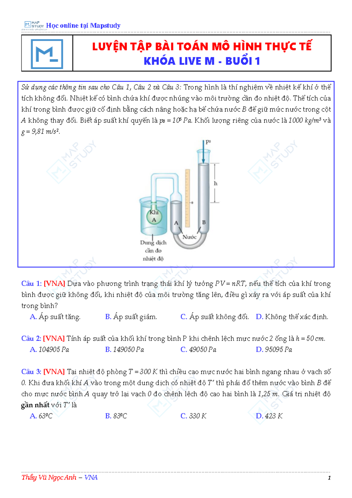 Luyện Tập Bài Toán Mô Hình Thực Tế - Khóa Live M - Buổi 1 & 2 - Studocu