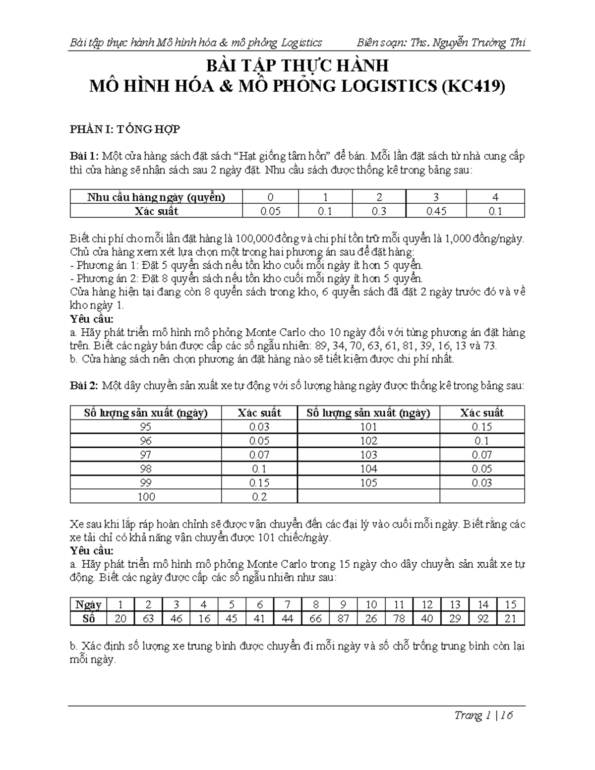 Bài tập Thực hành Mô hình hóa & Mô phỏng Logistics (KC419) - Studocu