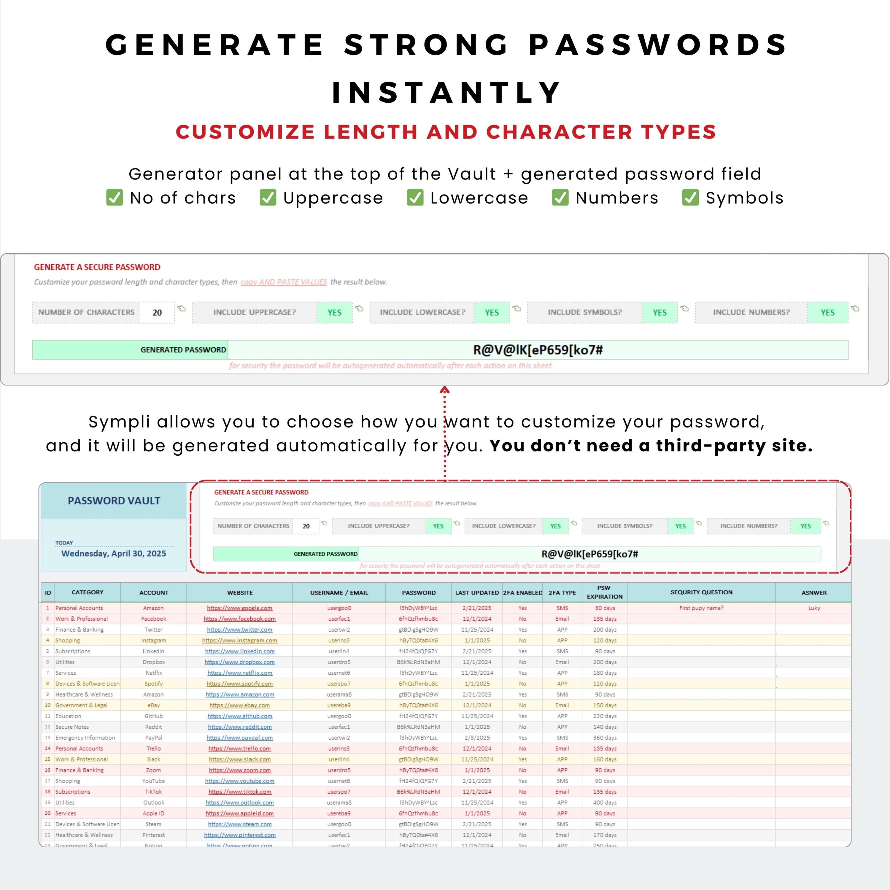 Excel Password Manager: Auto-lock, Password Generator (digital Download ...
