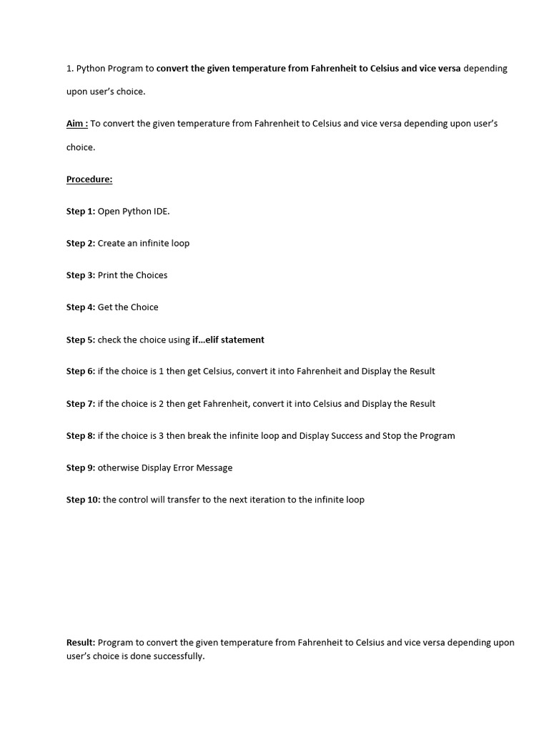 Based on this image's title: “Python Programming Lab Manual - 1. Fahrenheit to Celsius and Vice Versa ...”