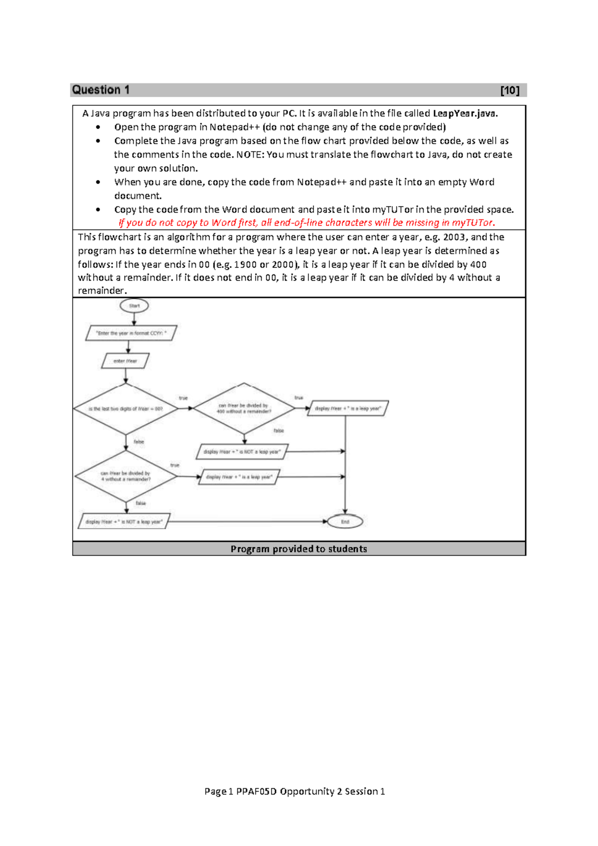 PPAF05D Opportunity 2 - Java Leap Year Program Instructions - Studocu