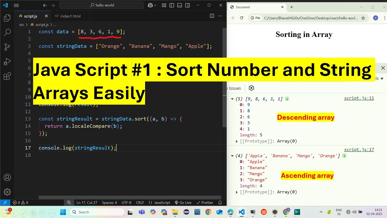 Java Script #1 - Sort Number and String Arrays into Ascending and ...