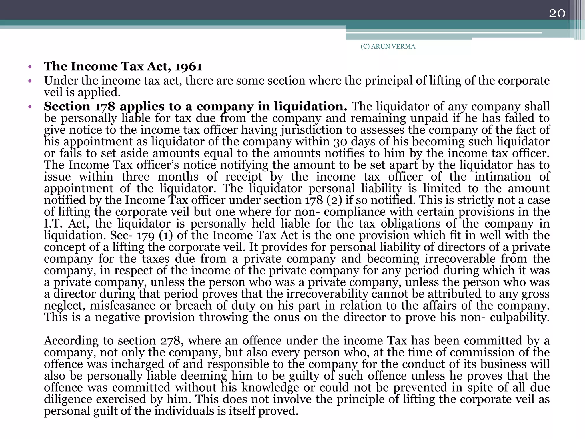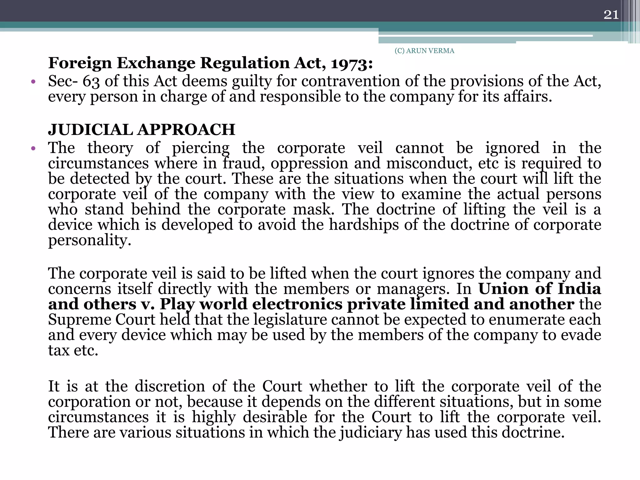 Lifting the veil of corporate personality | PPTX